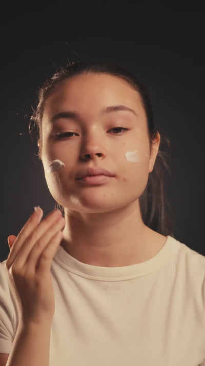 Scoop a small amount of the Rich Moisturizer and warm it between your fingertips. The texture softens on contact, allowing for a smooth, even application.